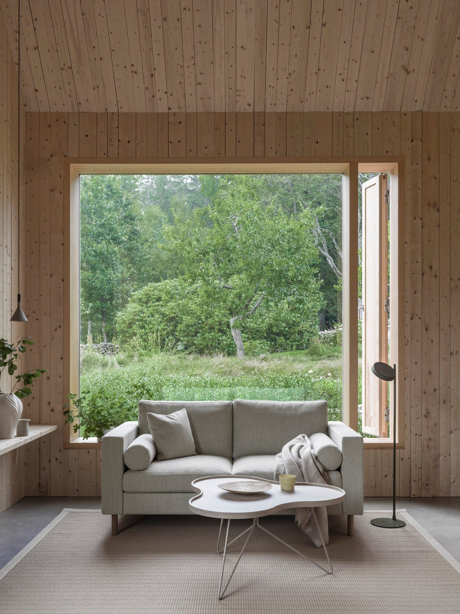 Savoa performs a low-key balancing act that adds a sculptural quality to the room.